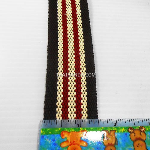 สายผ้า-ผ้ากุ๊น Cotton (ฝ้าย) ลายสลับ ขนาด 1.5 นิ้ว บรรจุ 50 หลา สีน้ำตาลเข้มแดงครีม รูป 2