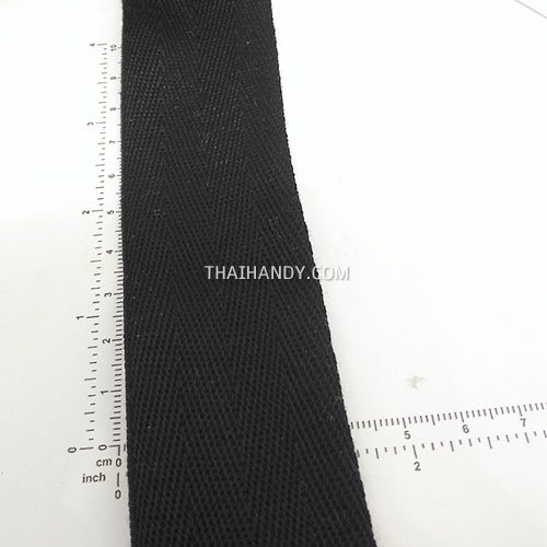 สายผ้า-ผ้ากุ๊น Cotton (ฝ้าย) ลายก้างปลา ขนาด 1.5 นิ้ว บรรจุ 1 เมตร สีดำ